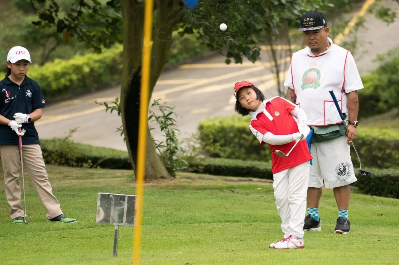 三洞切推杆在阳江涛景的练习果岭上顺利进行着,现场赛事总监梁毅及裁判员林荣昌给予选手规则上的指导。果岭边的选手家长成为了比赛的最好观众,精彩的切推杆都会获得大家的啧啧称赞。 周子勤称切、推杆是比赛领先关键