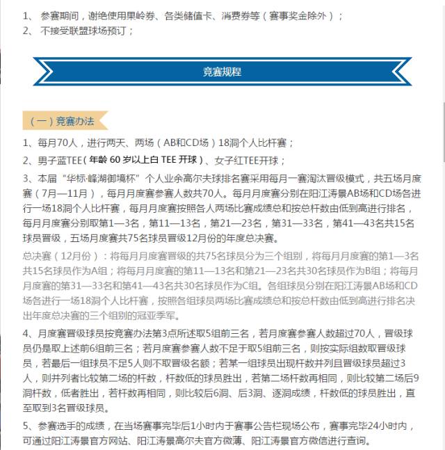 首届”华标•峰湖御境杯“个人业余高尔夫球排名赛总决赛赛事规程
